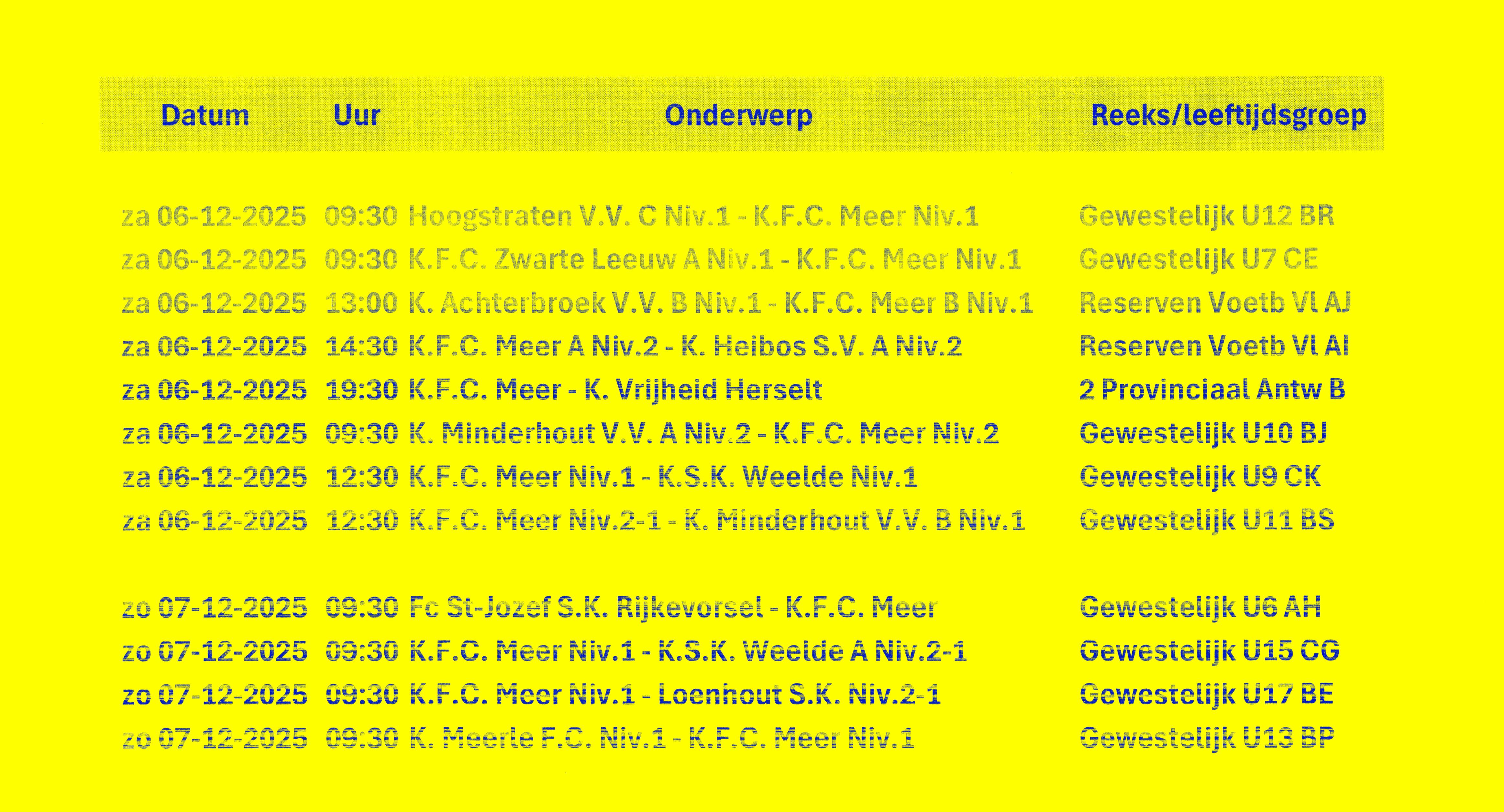 Eerstvolgende wedstrijden :
