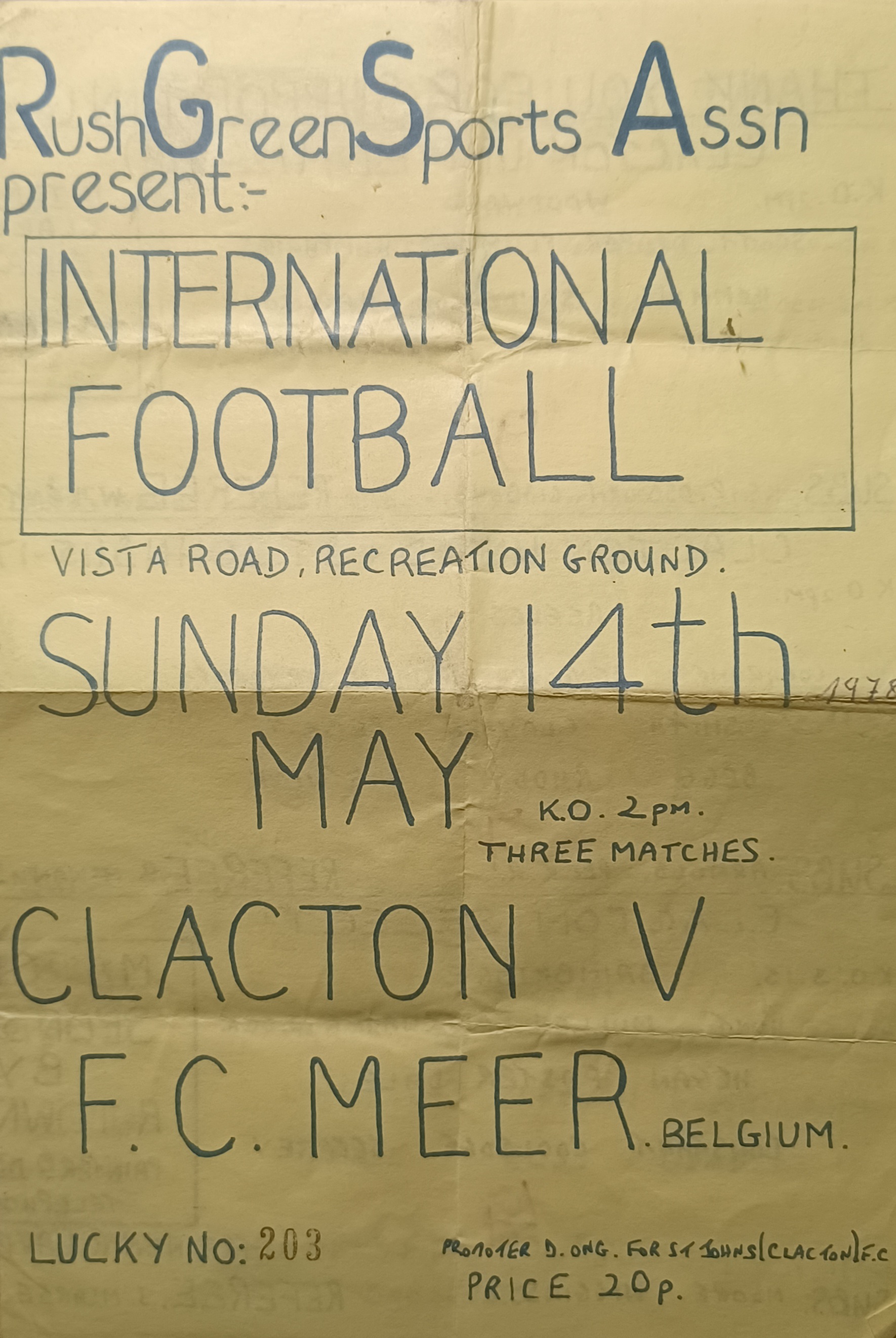Eentje uit de oude doos : De F.C. Meer scholieren (U17) op het veld van Clacton United in Engeland voor een vriendenwedstrijd tegen de plaatselijke leeftijdsgenoten op 14 mei 1978. Tegen hun kick and run waren we niet opgewassen en verloren dan ook kansloos met 7 - 0. 's Avonds op het international ball namen we dan wel duidelijk de bovenhand. Wie herkent deze inmiddels gepensioneerden nog ?