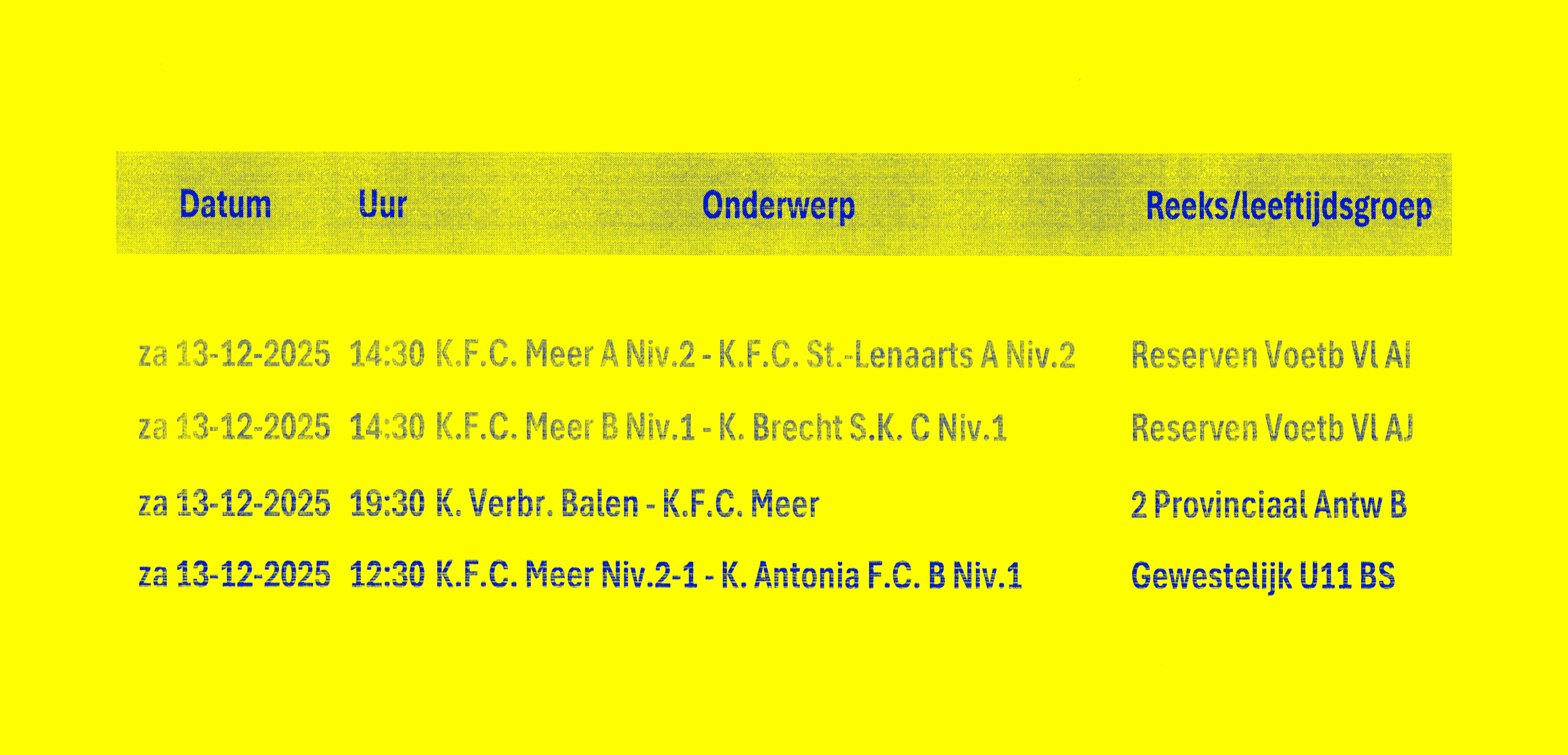 Voor vandaag, zaterdag 1 november zijn alle thuiswedstrijden van onze jeugd en reserven ploegen afgelast vanwege de overvloedige regenval van deze voormiddag.