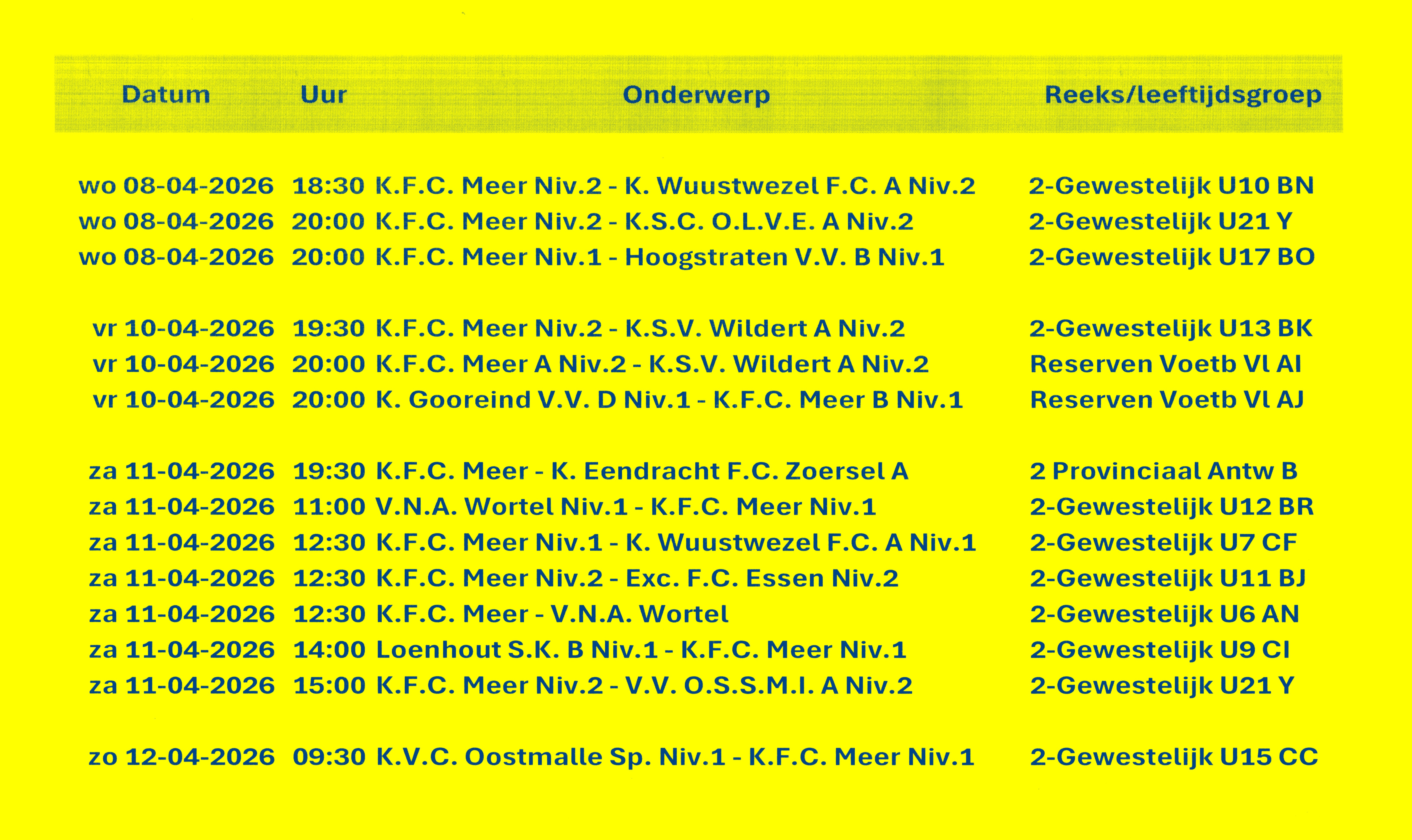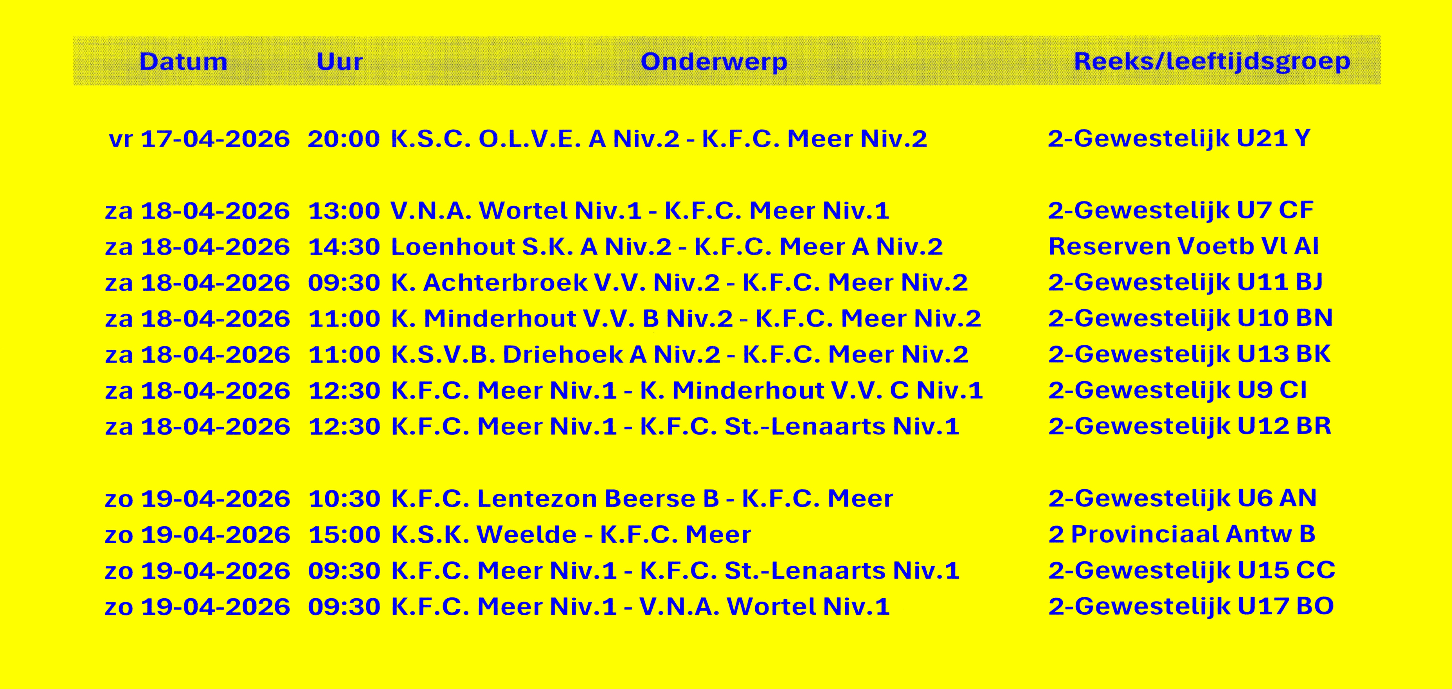 -Laat van je horen, neem je plaats in op de bus, en steun onze jongens met volle kracht. Samen sterk voor KFC Meer!