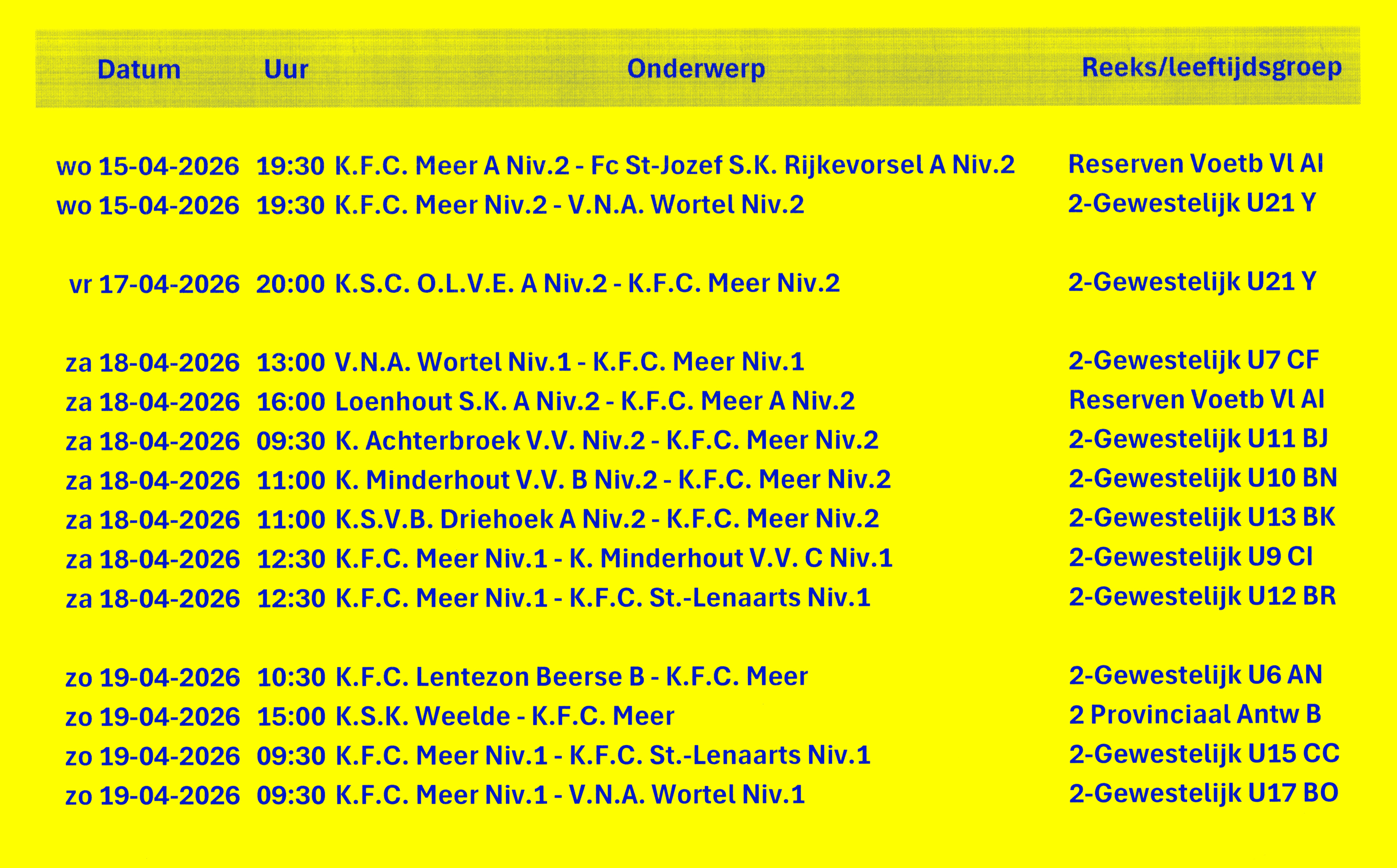 -Laat van je horen, neem je plaats in op de bus, en steun onze jongens met volle kracht. Samen sterk voor KFC Meer!