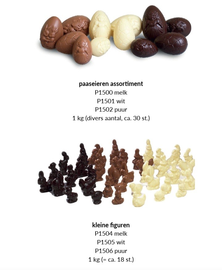 - Paasfiguren assortiment (1kg) melk, wit of puur
